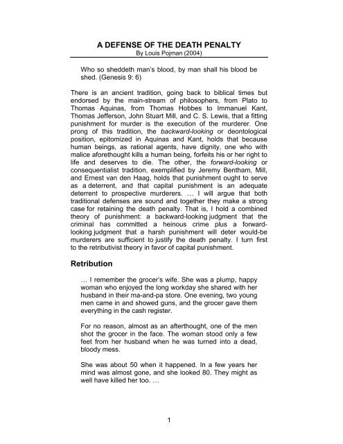 Pojman A Defense Of The Death Penalty